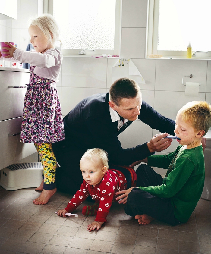 요한, 38세, 재료 개발자, 8개월 육아휴직을 하며 에베, 티라, 스티나와 함께 시간을 보냈다. “아내를 좀 더 이해하게 되었을 뿐 아니라 아이들과 관계도 돈독해졌습니다.” ⓒ요한 베브만