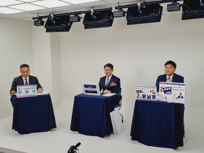 중림동398 재개발사업 조합장 후보자 유튜브 합동 생방송 모습. 중구 제공