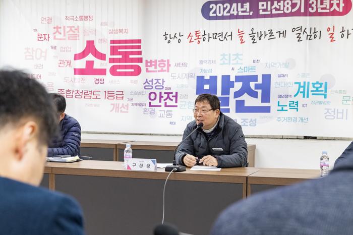 김경호 구청장은 이날 대책회의에서 △서민생활 안정 및 지역경제 활성화 △취약계층 지원 △겨울철 재난안전관리 철저 △당면 현안의 차질 없는 수행 등 4개 분야를 강조했다. 김 구청장은 민생과 직결된 사업과 행사는 정상적으로 추진하며 소비와 투자 예산을 적극 집행해 지역경제 위축을 막을 것을 당부했다.