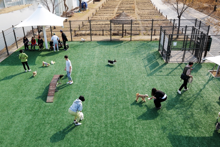 구는 지난해 중랑천에 위치한 반려견 놀이터를 확대 조성해 대형견과 중소형견 놀이터를 분리 운영하게 됐다. 내부에는 그늘막과 벤치 반려견 놀이기구가 마련돼 있어 반려견과 보호자가 자유롭게 이용할 수 있으며 24시간 개방돼 언제든 방문할 수 있다.