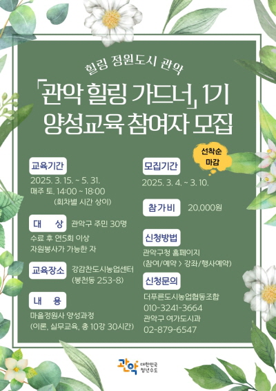 관악 힐링 가드너 1기 양성교육 포스터. 관악구 제공