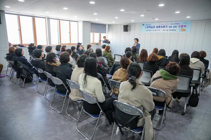 구는 지난 2월27일 강북구청에서 제2기 느린학습자 동행지원가 양성 과정 수료식을 개최했다. 이번 과정에는 주민 80명이 수강 신청해 이 중 44명이 선발돼 교육을 이수한 끝에 41명이 최종 수료했다. 수료생들은 심리상담가, 교사, 복지시설 관계자, 느린학습자 부모 등으로 구성됐다.