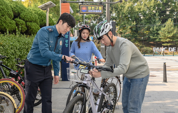 자전거 도난 방지를 위한 ‘스마트 자전거 지킴이’ 시스템도 운영 중이다. 전국 최초로 도입된 이 시스템은 전자칩이 내장된 자전거 번호판과 스마트폰 앱을 통해 △도난 알림 △주차·출차 알림 △이동 경로 확인 등의 서비스를 제공한다. 목동 학원가 4곳이 ‘자전거 지킴이 존’으로 지정돼 운영 중이며, 해당 구역 내에서 등록된 자전거가 이동하면 실시간 알림이 전송된다. 관제센터와 양천경찰서와 연계된 시스템으로 도난율을 낮추는 데 기여하고 있으며, 이를 인정받아 ‘2024년 대한민국 범죄예방대상’ 우수상을 수상했다.
