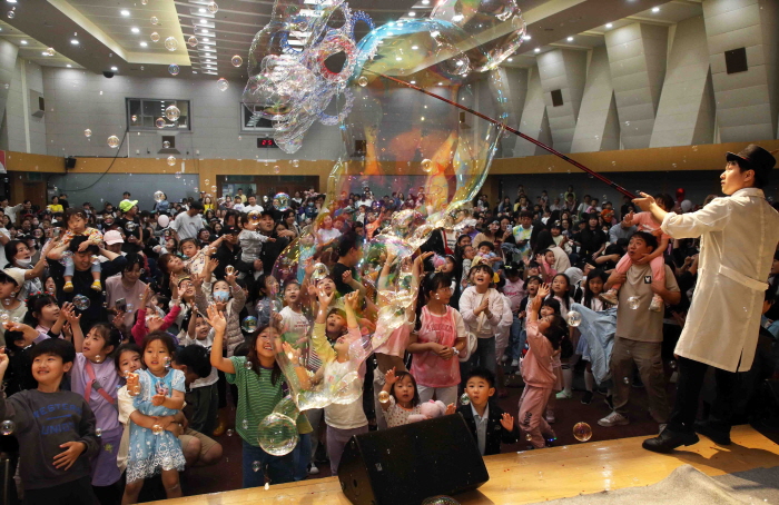 지난해 ‘도봉구 어린이날’ 행사에서 도봉구 아이들이 버블쇼를 관람하고 있다. 도봉구 제공
