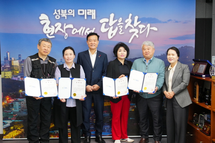 4월21일 석면안전관리 주민감시단 위촉식에 참석한 이승로 성북구청장(세 번째)과 주민감시단원들. 성북구 제공
