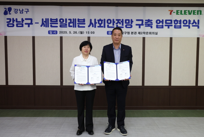 서울 강남구(구청장 조성명)는 5월26일 ㈜코리아세븐과 협약을 체결하고, 세븐일레븐 편의점을 활용한 복지사각지대 발굴체계 구축에 나섰다. 이번 협약은 구가 추진하는 ‘복지거점 편의점 사업’의 마지막 단계로, 이로써 앞서 협약을 맺은 CU, GS25, 이마트24를 포함한 4개 편의점 브랜드 총 231개소가 복지안전망의 일원으로 참여하게 됐다.