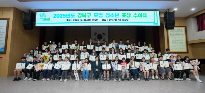 서울 강북구(구청장 이순희)는 지난 26일 구청 대강당에서 ‘2025년 강북구 모범 청소년 표창 수여식’을 개최했다고 밝혔다.