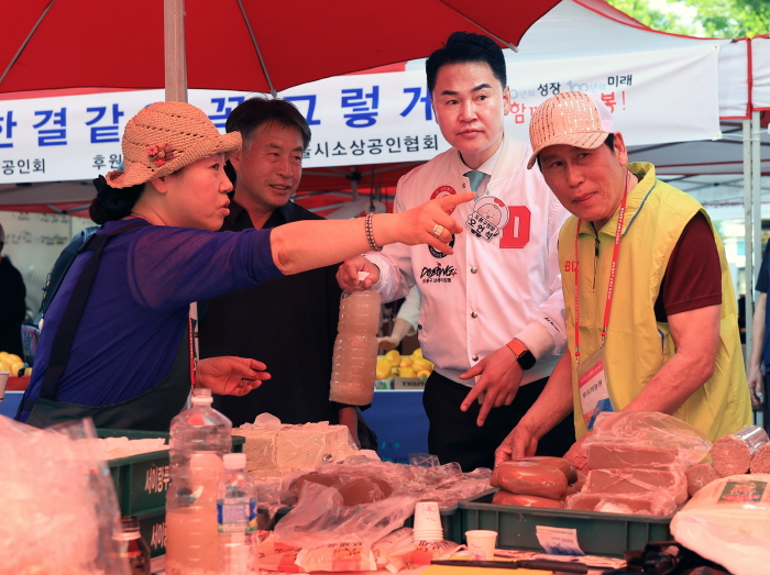오언석 구청장은 6월9일 장터 현장을 찾아 물품을 구입하고 소상공인들을 응원했다. 장터 시작일을 맞아 소상공인들의 사기를 북돋우기 위한 자리였다.