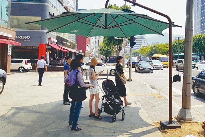 서초구는 폭염에 대비해 어르신·어린이 등 보행 약자를 위해 지난 4월 횡단보도, 교통섬 등 54곳에 대형 그늘막 ‘서리풀 원두막’(사진)을 설치했다. 이 그늘막이 주민들의 인기를 얻자, 이달 말까지 66곳에 추가 설치해 모두 120곳을 운영하기로 했다. 추가 장소 역시 주민 의견을 100% 반영해 횡단보도, 교통섬을 포함한 공원, 하천 등에 설치한다.