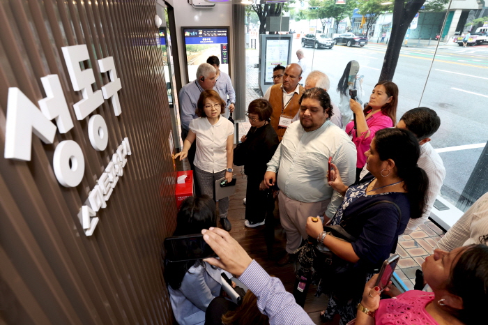페루 리마시 정책연수단이 성동구 스마트쉼터를 견학하고 있다. 성동구 제공