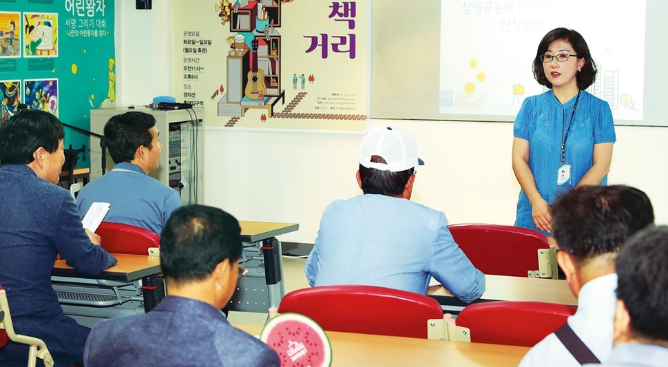 2015년 9월 조례를 제정한 뒤에는 건물주와 임차인끼리 ‘상생협약’을 체결하도록 주선했다. 단어도 낯선 젠트리피케이션을 이해시키고 ‘임대료 상승을 자제하겠다’는 내용의 협약에 서명하도록 건물주를 설득하는 작업은 무에서 유를 창조하는 일에 가까웠다. ‘관에서 내 재산권에 왜 관여하느냐’며 반발하는 건물주가 더 많았지만 날마다 방문하고 전화를 걸었다. 처음 통화에서는 마치 해줄 것처럼 답해놓고 다음에 전화를 걸면 수신 거부로 등록해둔 건물주도 있었다.
