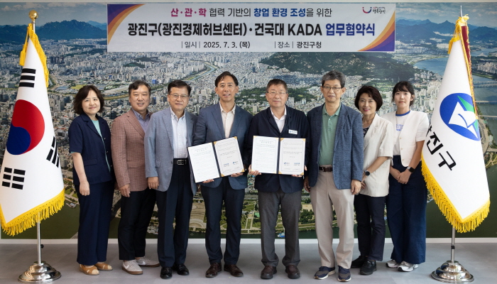 서울 광진구(구청장 김경호)는 7월4일 광진구청에서 건국대학교 항공우주 설계인증연구원과 광진경제허브센터 입주기업의 기술이전을 위한 업무협약을 체결했다.