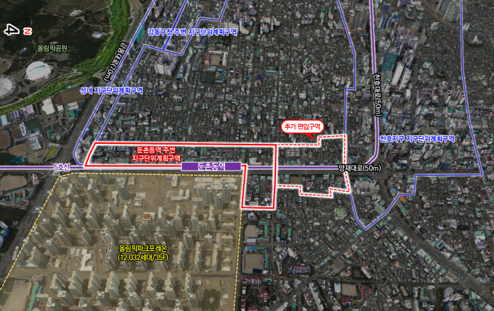 둔촌동역 일대 양재대로변은 올림픽파크포레온 입주와 역세권 활성화 사업 등으로 공간적‧기능적 중요성이 커지고 있는 지역이다. 구는 이러한 지역 여건을 반영해 도시 환경을 개선하고, 생활 가로를 활성화해 둔촌동역 일대를 거점으로 육성하고자 지구단위계획 재정비를 추진해왔다.
