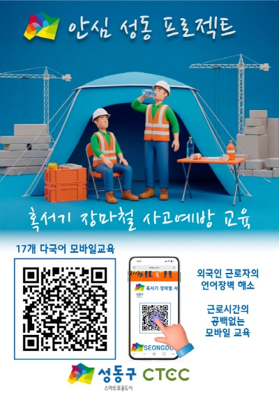 서울 성동구(구청장 정원오)는 건설 현장의 안전 사각지대를 해소하기 위해 모바일 기반 다국어 안전교육을 지원하는 ‘안심 성동 프로젝트’를 도입했다고 밝혔다.