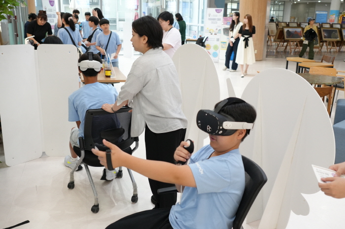 도봉구 지역 청소년들이 ‘메이커스쿨 도봉’에서 ‘가상현실(VR)‧3차원 콘텐츠’를 체험하고 있다. 도봉구 제공