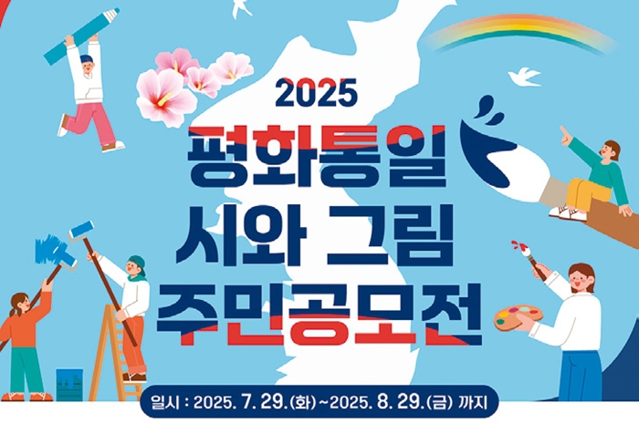 금천구(구청장 유성훈)는 ‘2025 평화통일 시와 그림 주민공모전’을 개최하고 8월29일까지 공모전 전용 누리집(www.금천구평화통일공모전.com)을 통해 참가자를 모집한다. 공모 주제는 △내가 바라는 평화 △내가 꿈꾸는 통일 한반도의 모습 △평화통일 실현에 대한 기대와 희망 등을 자유롭게 표현하면 된다.