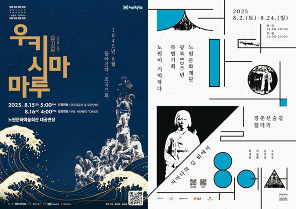 노원구(구청장 오승록)는 광복 80주년을 맞아 역사적 의미를 예술로 되새기는 특별 기획 ‘노원이 기억하다’를 개최한다. 예술을 매개로 광복의 가치를 깊이 있게 성찰하고 주민 모두가 다양한 시선으로 역사를 기억하기 위해서다. 실화를 바탕으로 한 창작 뮤지컬 ‘우키시마마루’와 기획 전시 ‘저마다의 길 위에서’도 행사의 의미를 더한다.