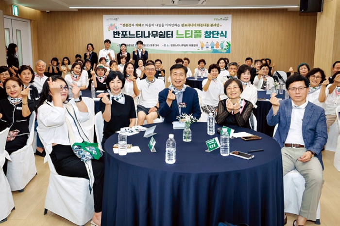 서초구(구청장 전성수)는 지난 25일 반포느티나무쉼터에서 시니어 재능나눔 봉사단 ‘느티풀’ 창단식을 개최했다. 창단식에는 전성수 서초구청장을 비롯해 전미자 한국복지환경디자인연구소 이사장, 시니어 재능나눔 봉사단에 참여하는 어르신 등 60여 명이 참석해 지역사회에 따뜻한 나눔을 실천하기 위한 운영 방향과 활동 계획을 논의했다.