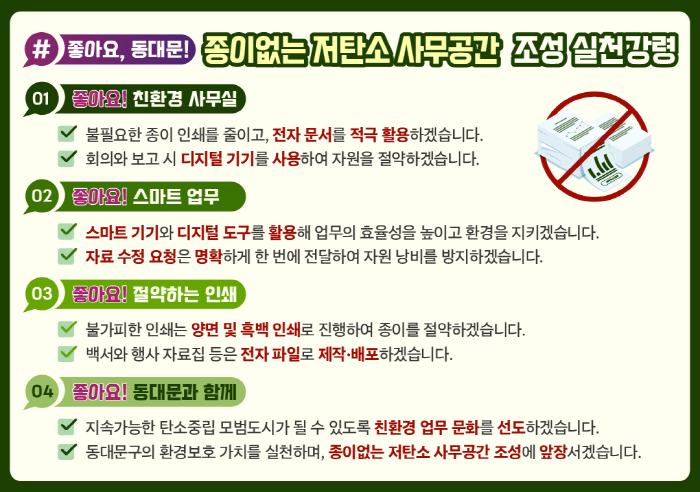 종이없는 저탄소 사무공간 조성 실천강령. 동대문구 제공