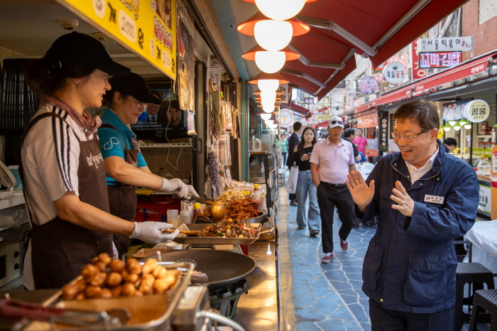 화양시장에서 상인과 소통하는 모습. 광진구 제공