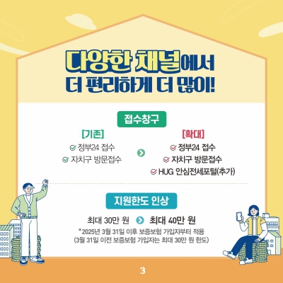 이 사업은 임차인이 전세보증금 반환보증에 가입하도록 유도해 전세사기나 역전세로 인한 보증금 미반환 피해를 사전에 방지하기 위한 것으로 지난해부터 운영돼 왔다. 특히 올해 4월부터는 지원금 상한을 기존 최대 30만 원에서 40만 원으로 높여 경제적 실효성을 강화했으며 신청 절차도 간소화했다. 정부24와 방문 접수 외에도 ‘안심전세 앱’을 통한 모바일 신청이 가능해졌고, 별도 서류 발급 없이 간편한 접수가 가능하다.