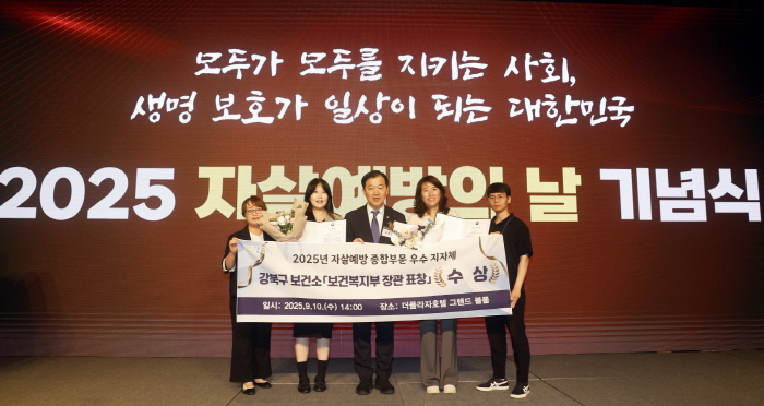 서울 강북구(구청장 이순희)는 지난 10일 보건복지부가 주관한 ‘2025년 자살예방의 날 기념식’에서 보건복지부 장관 표창을 수상했다고 밝혔다.