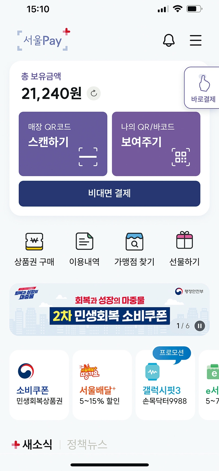 서울페이+의 가장 큰 장점은 5~15% 할인된 가격으로 ‘서울사랑상품권’을 살 수 있다는 것이다. 서울시가 발행하는 (광역)서울사랑상품권과 자치구가 발행하는 지역사랑상품권으로 구분되며 시민 가계 절약과 골목상권 활성화를 목표로 서울페이+ 앱에서만 구매와 결제가 가능하다. 과거 23개 결제 앱에서 운영되던 구매·결제 기능을 통합해 시스템과 회원 관리의 효율성을 높였다. 또한 과거 현금 결제만 가능했던 서울사랑상품권을 신용·체크카드로도 살 수 있게 했다. 여기에 민생회복 소비쿠폰, 지역사랑상품권, 손목닥터9988 등 다양한 정책 지원금과 생활 서비스 신청·조회 기능도 함께 제공한다.