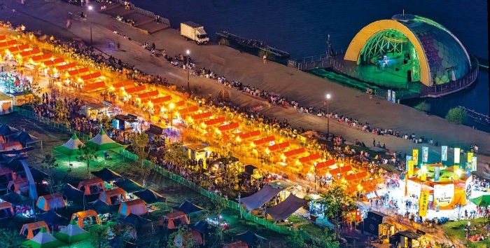 한강에서 세계인의 맛을 즐긴다. 밤도깨비야시장이 펼쳐지는 반포한강공원에서 국내 최대 규모의 다양한 글로벌 음식과 음료 잔치가 벌어진다. 각국 대사관과 문화관 등이 참여하는 글로벌 플리마켓도 빼놓을 수 없는 볼거리다.