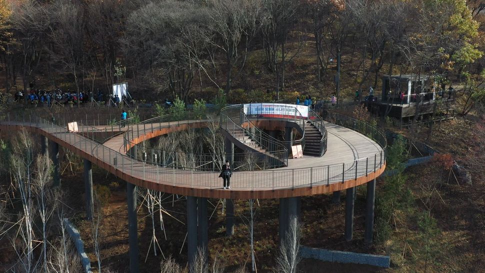 서울 중랑구(구청장 류경기)는 13일 서울둘레길 4코스 망우·용마산 구간에 조성된 용마산 스카이워크를 개통하고 스카이워크에서 망우수국길로 이어지는 새로운 녹색 산책길을 선보였다고 밝혔다.