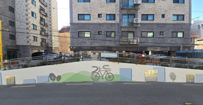 자전거 거리로 유명한 천호동의 상징성을 담은 천호옹벽 B면. 강동구 제공