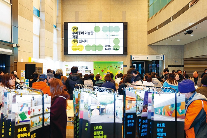 중랑구(구청장 류경기)는 지난 8일 구청 1층 로비에서 중랑 우리동네 미술관 작품 기록 전시회 개막행사를 열고 2019년부터 2025년까지 7년간 추진해온 ‘중랑 우리동네 미술관’ 공공미술 사업을 한눈에 볼 수 있는 자리를 만들었다.