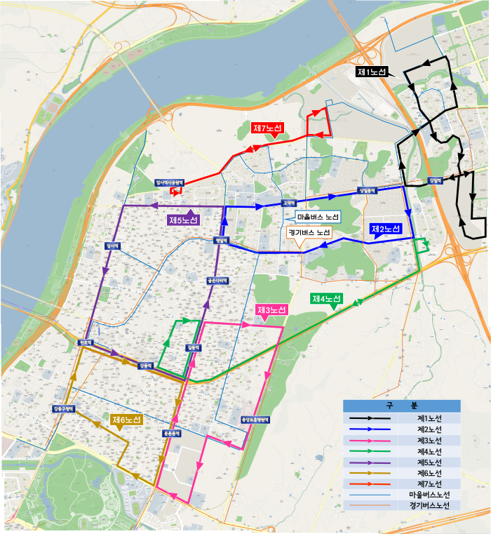무료 셔틀버스 전체 노선도. 강동구 제공