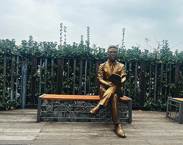 효사정 아래쪽에 심훈 선생 좌상을 설치하고 문학공원으로 조성했다.