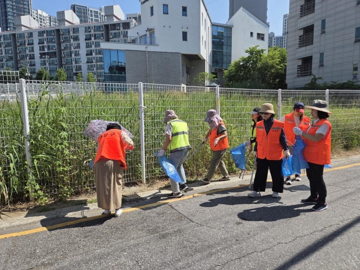 거여2동 통장협의회와 함께 청소하는 모습. 송파구 제공