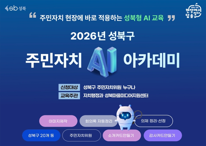 서울 성북구(구청장 이승로)는 디지털 전환 시대에 대응하는 주민자치 역량 강화를 위해 '2026년 성북구 주민자치 AI 아카데미'를 본격 추진한다고 밝혔다.