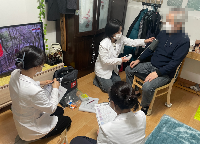 센터를 중심으로 의사·간호사·영양사·물리치료사로 구성된 다학제팀이 65살 이상 어르신 가정을 찾아간다. 이들은 혈압·혈당 측정뿐 아니라 영양·근력 평가, 복약 상태 점검 등 종합 평가를 거쳐 개인별 케어 플랜을 수립하고 3개월 동안 총 8회 무료 방문 서비스를 제공한다.