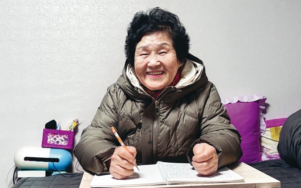 “미도에서는 17년 일했는데 큰 월급은 아니었지만 나는 그 집 아니면 죽을 줄 알고 밤늦게까지 열심히 일했어. 반찬도 만들고 김치도 담갔지. 배추쌈이 나오면 질긴 껍질은 다 걷어내고 정성껏 반찬을 만들었지. 그 덕에 반찬 맛이 좋다는 평도 들었고.” 그는 무릎 연골이 다 닳아 양쪽 다리를 수술하면서도 식당 일용직을 다니며 거친 세월을 버텨냈다. 배움 대신 가족을 지켜낸 거룩한 ‘살림' 미도에서 나온 뒤에도 일흔이 넘도록 광주에서 식당 ‘날일’(일용직)을 놓지 않았다. “애들이 내가 광주에 있으면 자꾸 밥 먹고 일하러만 다닌다고, 안 된다고 서울로 오라 해서 10년 전 여기 관악구로 왔어. 얼른 내려와서 일 좀 해달라고 광주에서 한동안 전화가 왔었지.” 보다 못한 자녀들의 만류로 서울로 모셔온 뒤에야 비로소 어르신의 기나긴 주방 생활도 끝났다. 어릴 적 농사일부터 광주 일식집 주방을 지켰던 시간까지 어르신의 평생은 줄곧 누군가를 먹여 살리는 일로 꽉 채워져 있었다. 홀로 다섯 남매를 건사해야 했던 어머니에게, 그것은 벼랑 끝에 선 가족의 생명을 온몸으로 지켜낸 가장 거룩하고 위대한 ‘살림’이었다. 자녀 다섯 중 둘은 대학에 보내고 다른 둘은 고등학교, 다른 하나는 중학교에 보내 모든 자식을 충분히 가르치지 못한 것이 못내 아쉽다고 어르신은 말했다. 하지만 정작 당신은 가족을 굶기지 않기 위해 배움을 기꺼이 포기했던 눈물겨운 희생이었다. 여든 하나에 다시 잡은 연필, 꾹꾹 눌러쓴 눈부신 청춘 다섯 남매를 반듯하게 키워내고 노후가 찾아왔지만, 마음 한구석에는 늘 ‘글을 모른다’는 답답함이 남아 있었다. “농사짓고 살 때는 몰랐는데 조합이나 은행 같은 데 가서 뭐 쓰라고 할 때 못 쓰니 마음이 참 안 좋더라고.” 그런 어머니의 마음을 헤아린 넷째 딸의 권유로 어르신은 2년 전, 여든하나라는 적지 않은 나이에 평생학습관의 문을 두드렸다. 배움의 길은 멀고도 험했다. “제일 힘든 건 아침에 배워도 돌아서면 잊어먹는다는 거. 국어공부에서 어려운 건 한글은 입에서 발음은 똑같은데 쓸 때는 받침이 여러 종류라 어렵더라고. 산수에서 몇백만, 몇천만 할 때는 0자가 많아서 어렵고 영어에서는 A, B, C, D는 쉬운데 뒤로 갈수록 P, Q, R 이런 것은 헷갈려.” 하지만 어르신의 열정은 뜨거웠다. “비가 오나 눈이 오나 학교엘 갔지. 일해야 하는 날에는 빠지기는 했지만. 다른 사람들은 추워서 못 가고 미끄럽다고 안 오는 날도 있더니만 나는 그런 날에도 학교에 갔어. 밤에 책상에 앉아서 꼭 복습해봐야 생각이 나더라고.” 어르신은 침대에 앉아 사용할 수 있도록 넷째 딸이 사준 책상에 앉아 일기를 썼다. 띄어쓰기나 마침표는 빠져 있고, 받침이 헷갈려 여러 번 고쳐 쓴 흔적도 가득하다. “이게 말이 되나 안 되나 무조건 써보자고 쓴 거지. 글자 써보려고 공책 한 권 다 쓰고 또 다른 공책도 쓰고 그랬어”라며 쑥스러워했다.