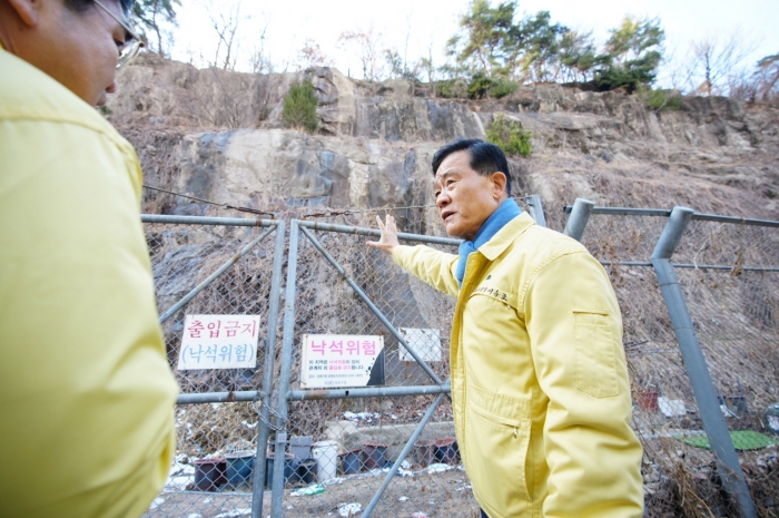 2025년 3월 이승로 성북구청장이 해빙기 안전점검을 진행하는 모습. 성북구 제공