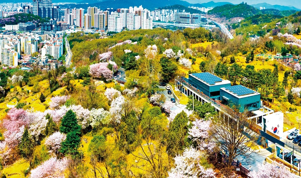 공원 안은 즐길 거리로 가득하다. 맨발로 걷기 좋은 황톳길과 울창한 등산로가 이어지고, 국제규격의 인공암벽장에선 스포츠클라이밍의 역동적인 에너지가 넘쳐난다. 여름이면 아이들의 웃음소리가 끊이지 않는 물놀이장과 반려동물 쉼터까지 갖춰 남녀노소 누구나 머물고 싶은 편안함을 선사한다.