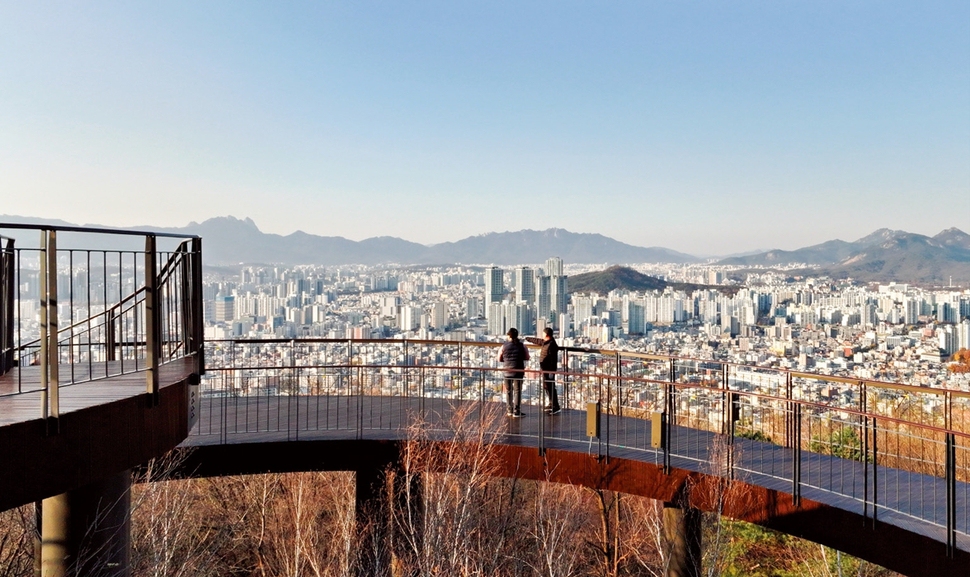 이곳에 서면 서울이라는 거대한 도시가 한 폭의 작품처럼 펼쳐진다. 발아래로는 아기자기한 동네 풍경이, 시선을 멀리 두면 남산부터 북한산, 도봉산의 유려한 능선이 파노라마처럼 이어진다. 특히 해 질 녘 붉은 노을이 도시의 불빛과 섞이는 찰나는 이곳을 ‘노을 갤러리’로 만드는 최고의 하이라이트다. 경사가 완만한 데크길 덕분에 남녀노소 누구나 쉽게 오를 수 있다는 점도 매력적이다. 복잡한 도심에서 한 발짝 벗어나 탁 트인 개방감을 느끼고 싶다면 이 공중 산책로에 올라보길 권한다.