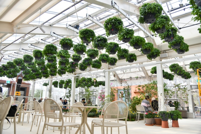 새롭게 단장한 정원지원센터는 기존보다 약 37% 넓어진 457.7㎡ 규모로 확장됐다. 특히 카페 포레스트의 실내 좌석을 24석에서 70석으로 대폭 늘리고, 전체 좌석수도 206석으로 확보해 이용 편의를 높였다. 실내는 자연채광을 극대화한 온실형 구조에 공중 식물(행잉 플라워)을 배치해 화사한 분위기의 ‘힐링 포인트’로 꾸몄다.
