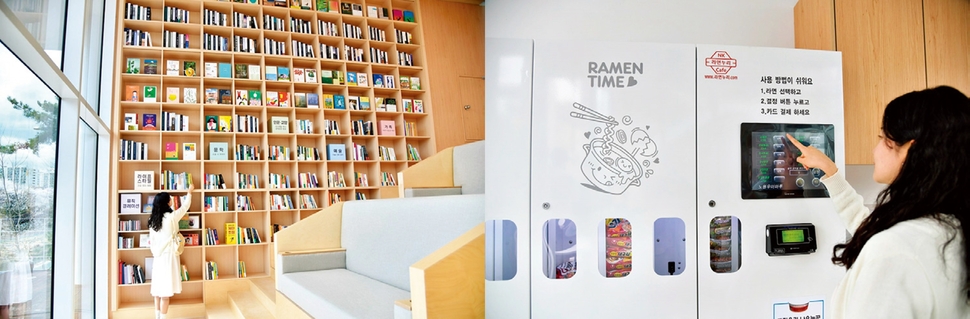 우이마루 1층에 설치된 북스텝(왼쪽)과 라면부스. 노원구 제공
