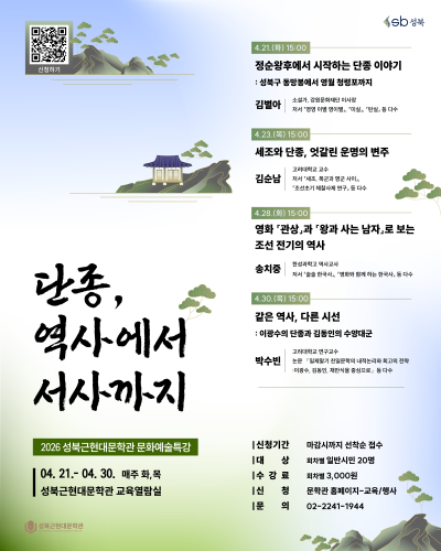 서울 성북구는 성북근현대문학관 문화예술특강 ‘단종, 역사에서 서사까지’를 4월21일부터 30일까지 성북근현대문학관 교육열람실에서 운영한다.