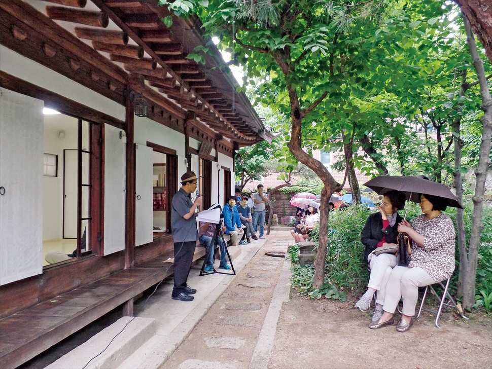 성북동 골목에 소박한 한옥이 있다. 국립박물관장을 지냈고 〈무량수전 배흘림기둥에 기대서서〉라는 책으로 유명한 최순우 선생의 옛집이다. 재개발로 사라질 위기에 있던 이곳은 시민들이 성금을 모아 지켜낸 시민문화유산 1호로, 지역주민들의 사랑을 받고 있다. 해마다 고택의 뒤뜰에선 문화행사들이 이어진다. 시인들과 시 창작교실의 수강생인 주민들의 자작시 낭송회도 열렸고, ‘성북동, 시인과의 만남’도 해마다 두번 토크쇼 형태로 열린다.