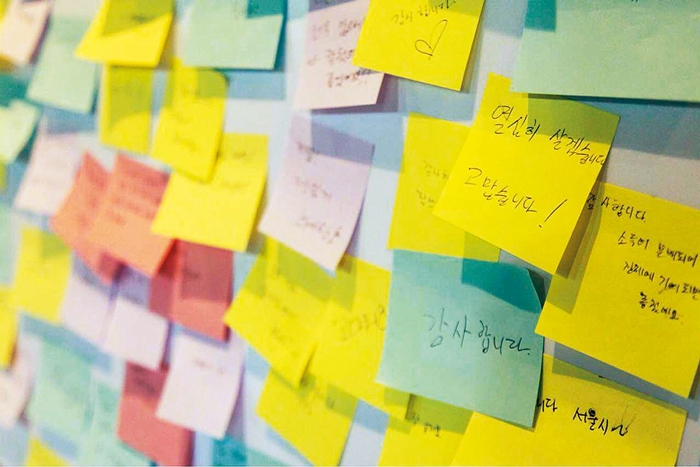 지난해 청년수당 오리엔테이션에 참석한 청년들이 느낀 점과 소망 등을 적은 쪽지들. 서울시 제공