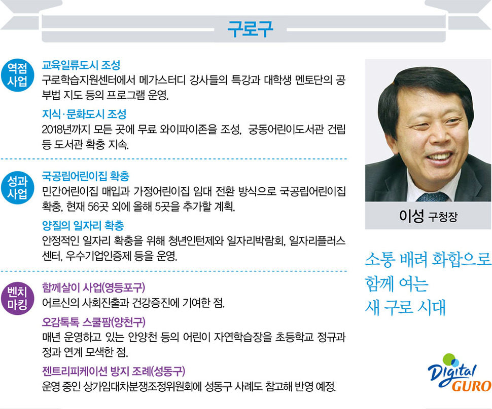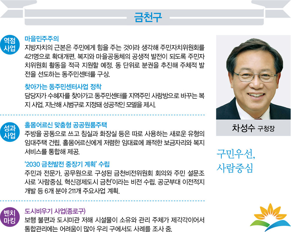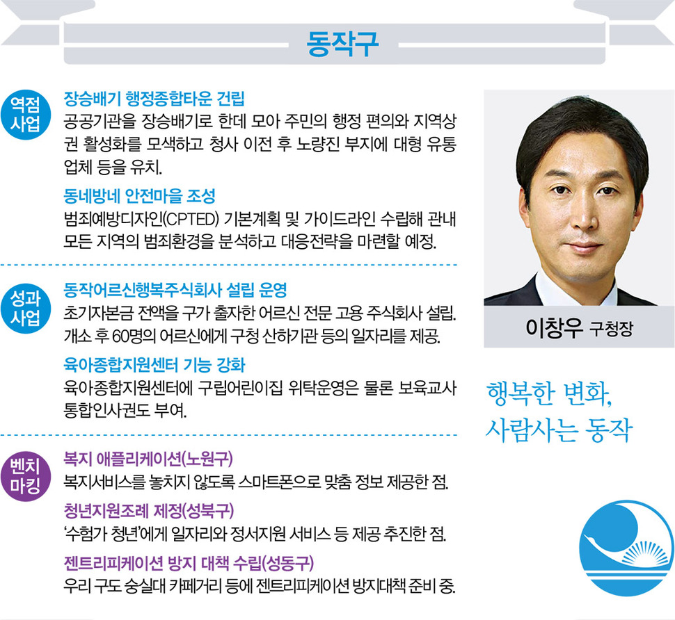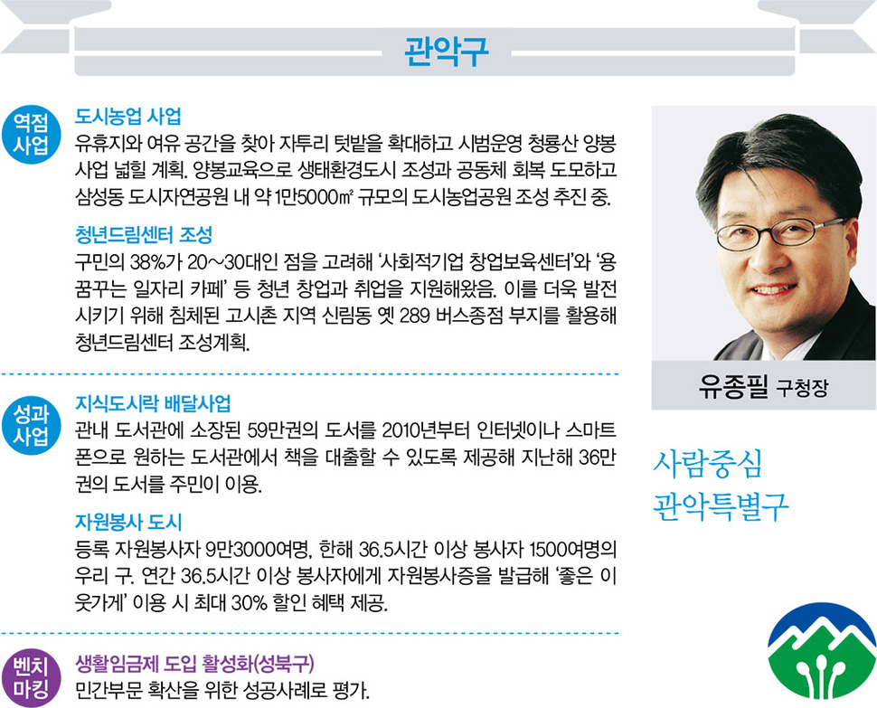 서울생활 길라잡이 <서울&>이 창간을 맞아 서울특별시 자치구청장 25명을 대상으로 전수조사한 2016년 정책방향과 벤치마킹 정책