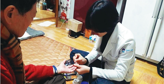 ‘찾아가는 동주민센터’ 소속 방문간호사가 어르신을 찾아가 건강 상담과 복지서비스를 하고 있다. 서울시 제공