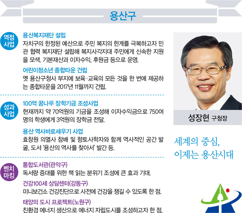 서울생활 길라잡이 <서울&>이 창간을 맞아 서울특별시 자치구청장 25명을 대상으로 전수조사한 2016년 정책방향과 벤치마킹 정책