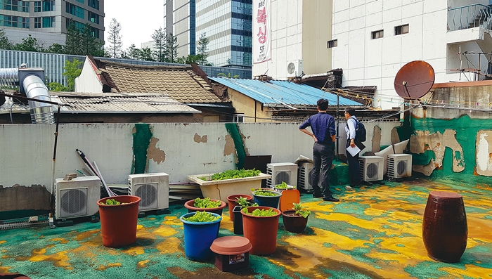 지난 12일 서울시와 자치구 공무원이 건축구조기술사 등 외부 전문가와 함께 노후 건축물을 점검하고 있다. 서울시 제공