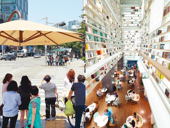 성동에는 ‘책마루 도서관’(오른쪽 사진)이 있다. 유휴 공간으로 있던 구청 1층 로비를 2만여 권의 장서를 구비한 카페형 도서관으로 바꿔놓으니 많은 주민이 찾아오는 문화 공간으로 거듭났다. 평일에는 엄마들이 아이의 손을 잡고 와서 책도 읽고 이웃들과 담소를 나누고 있으며, 주말에는 온 가족이 함께 와서 즐거운 시간을 보내고 있다.